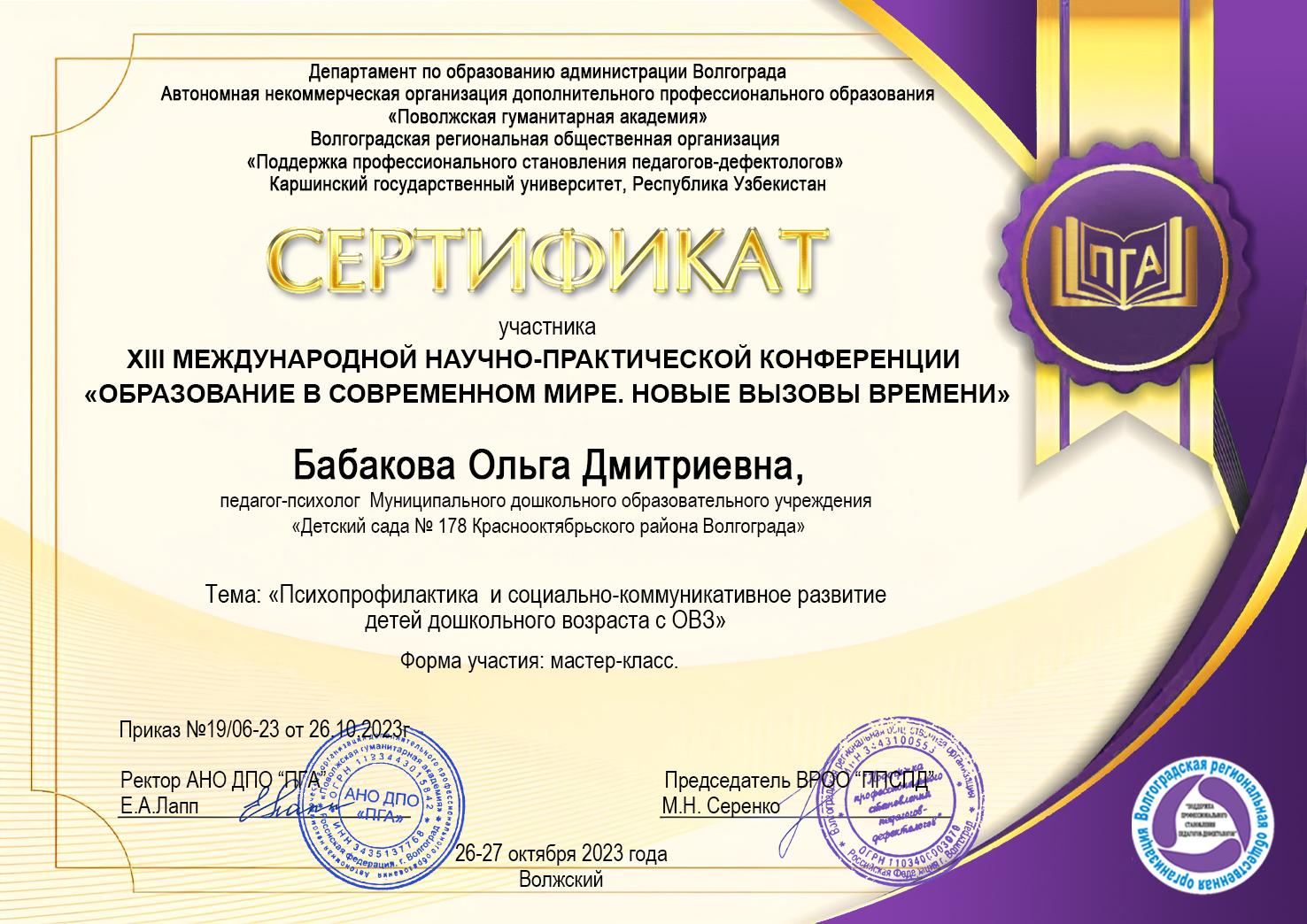 26 октября 2023 года на базе МОУ детский сад № 178 функционировала секция Международной научно-практической конференции "Образование в современном мире.Новые вызовы времени". Педагоги МОУ детский сад № 178 у удовольствием поделились своим опытом, показали открытие занятия, мастер-классы.
